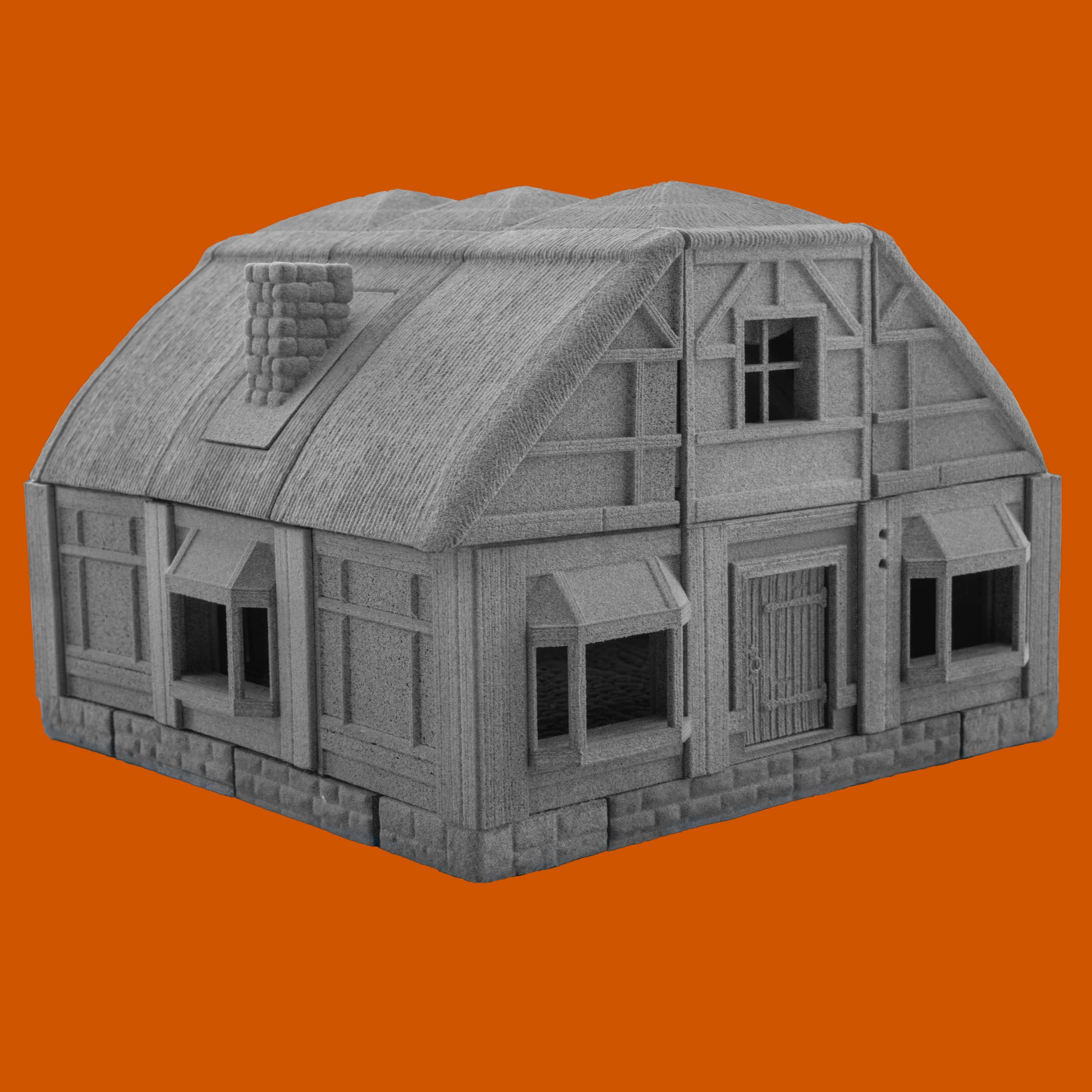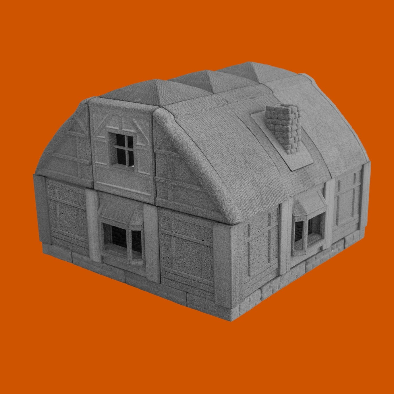 Launch your campaign in this fully playable tavern. This festive Tudor-style building offers a removable thatched roof, hanging sign, bay windows, hinged door, stone chimney, and wooden floors. Cheers to that!